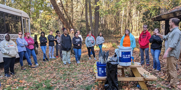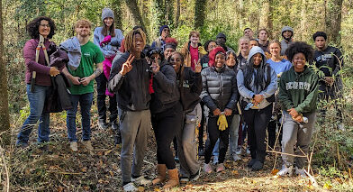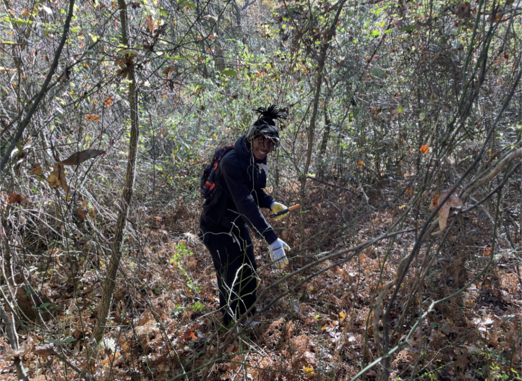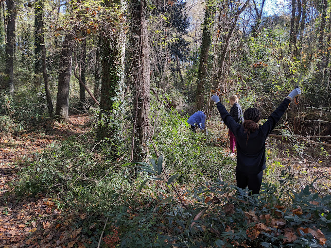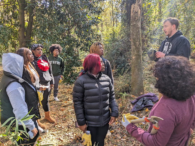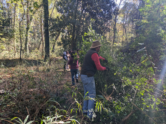 In the afternoon, Amber Puckette returned for her second time to Upper Chinquapin with another class of University 101 folks. The students were enthusiastic and excited to learn from SPACE about the invasive plants, how to use the different tools, and more!